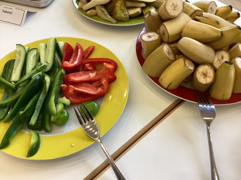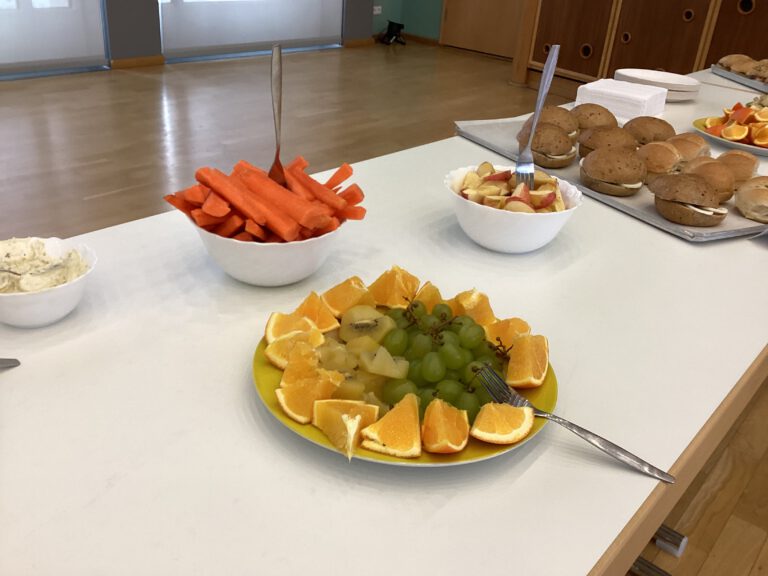 Obst statt Schokoriegel, Gemüsesnacks statt eingeschweißter Salamisticks – und Vollkornbrötchen, soweit das Auge reicht: Ein gesundes Frühstück für alle Schülerinnen und Schüler hat der Schülerrat am Mittwoch auf die Beine gestellt. In einem organisatorischen Kraftakt hatten die gewählten Vertreterinnen und Vertreter aller Klassen zu Tisch geladen, um in der Aula gemeinsam gesund zu frühstücken und in entspannter Atmosphäre eine kleine Verschnaufpause im Schulalltag zu schaffen. Die Idee dazu wurde im Schülerrat selbst geboren. Bei der Umsetzung begleiteten Frau Franke (Beratungslehrerin) und Frau Skurras (Schulsozialarbeit) die Schülerinnen und Schüler, die vom Einkauf bis zum Obstschneiden, der Vorbereitung des Buffets und dem Aufräumen viel Arbeit für dieses Frühstück auf sich genommen haben. Finanziert wurde das Frühstück mit den Einnahmen, die Schülerinnen und Schüler mit dem Projekt „genialSozial“ durch ihre Arbeit für einen guten Zweck erwirtschaftet haben. Ein großer Dank gebührt zudem den großzügigen Sponsoren: Obstkelterei Kurt Heide, Schlemmereck, dem VBFA e.V. sowie privaten Spendern. Für ihre freundliche Unterstützung danken wir außerdem der Bäckerei Preußner und dem Simmel-Markt in Grüna (Chemnitzer Straße).